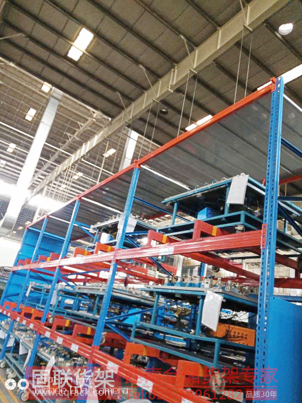 某公司重型模具架,采用重型高位貨架+跨梁的結構,跨梁架于橫梁上,方便用叉車存取模具,每層可存放重達3T左右的模具。