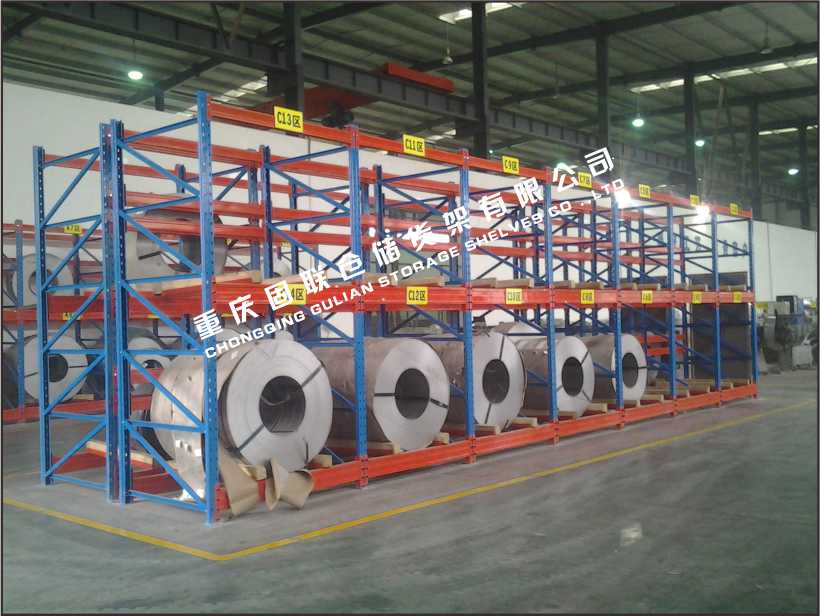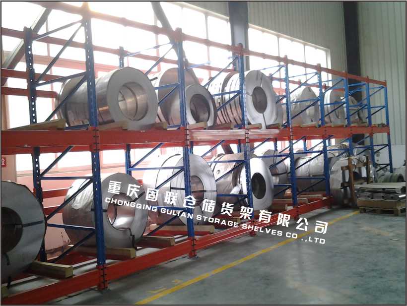 此库房重庆某汽车行业库房之钢圈货架项目(采用特制横梁及挂件,特制隔挡,单层承载可达6T)。
