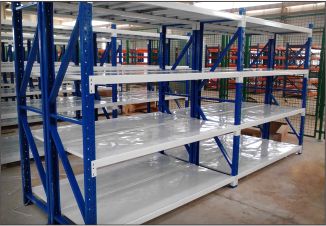 倉庫存放長料型管件,雙邊存放,從上到下懸臂長度依次加長,方便存取。