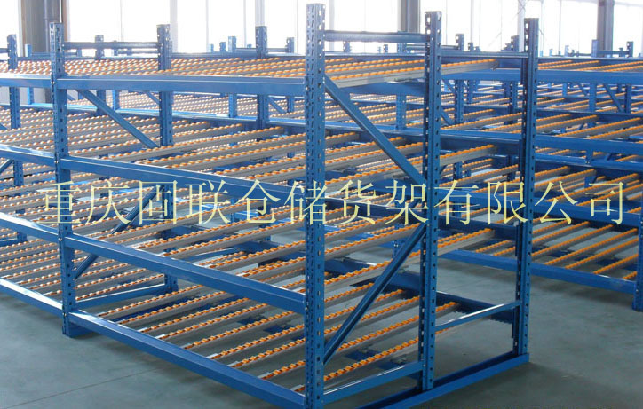 某食品生產廠儲存方式解決方案之--流利貨架,四層,每條設置多條滑道,揀選方便快捷,提高了工作效率。